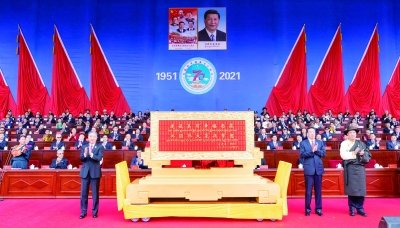 中共中央书记处书记、中央统战部部长、中央代表团副团长尤权宣读了中共中央、全国人大常委会、国务院、全国政协、中央军委关于庆祝西藏和平解放70周年的贺电。