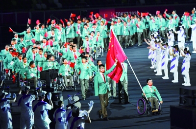 8月24日,第16届夏季残疾人奥林匹克运动会开幕式在日本东京举行。这是中国体育代表团入场。新华社记者 胡虎虎/摄