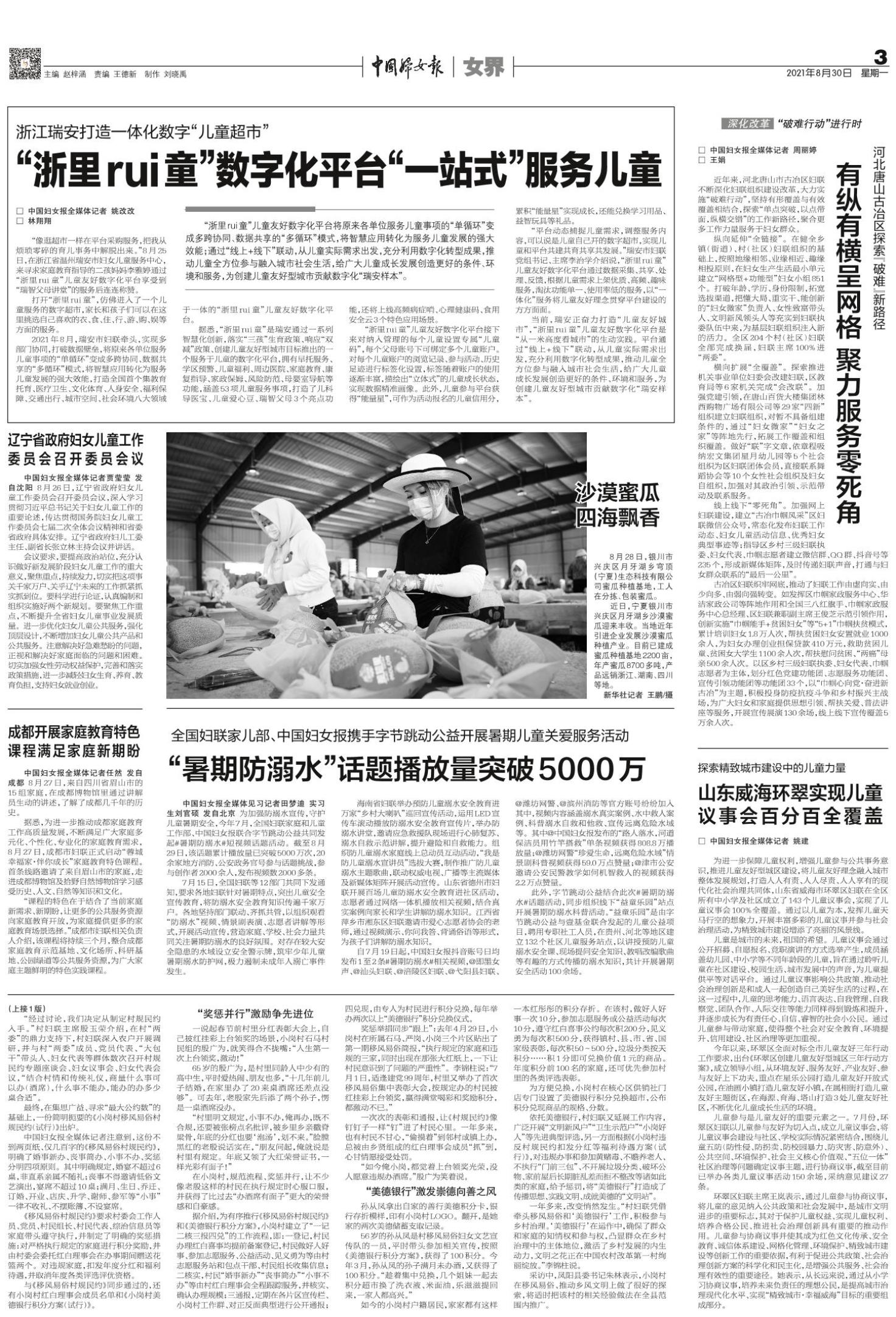 《中国妇女报》(电子版)的一切内容(包括但不限于文字、图片、PDF、图表、标志、标识、商标、版面设计、专栏目录与名称、内容分类标准以及为读者提供的任何信息)仅供中国妇女报读者阅读、学习研究使用,未经中国妇女报及/或相关权利人书面授权,任何单位及个人不得将《中国妇女报》(电子版)所登载、发布的内容用于商业性目的,包括但不限于转载、复制、发行、制作光盘、数据库、触摸展示等行为方式,或将之在非本站所属的服务器上作镜像。否则,中国妇女报将采取包括但不限于网上公示、向有关部门举报、诉讼等一切合法手段,追究侵权者的法律责任。