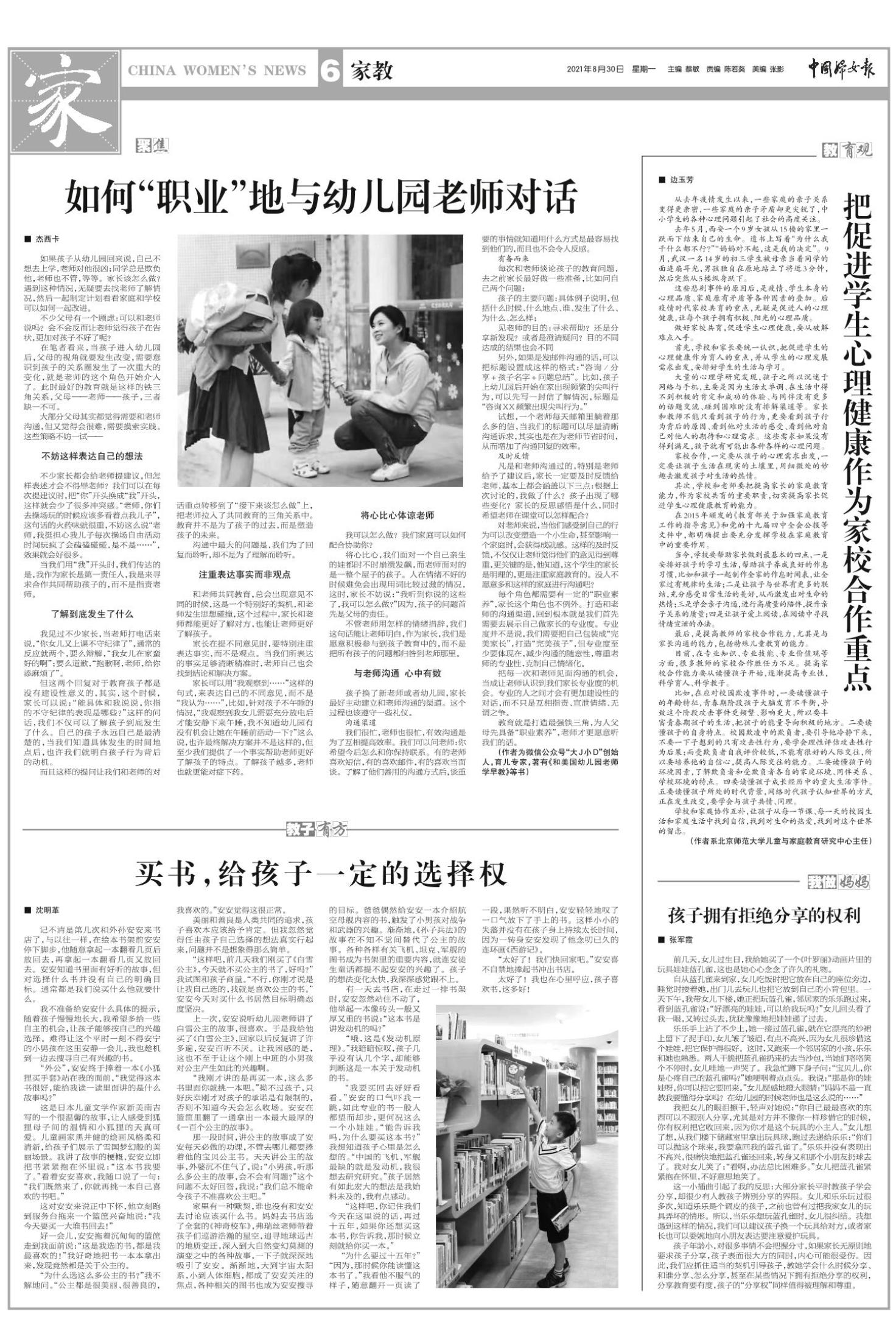 《中国妇女报》(电子版)的一切内容(包括但不限于文字、图片、PDF、图表、标志、标识、商标、版面设计、专栏目录与名称、内容分类标准以及为读者提供的任何信息)仅供中国妇女报读者阅读、学习研究使用,未经中国妇女报及/或相关权利人书面授权,任何单位及个人不得将《中国妇女报》(电子版)所登载、发布的内容用于商业性目的,包括但不限于转载、复制、发行、制作光盘、数据库、触摸展示等行为方式,或将之在非本站所属的服务器上作镜像。否则,中国妇女报将采取包括但不限于网上公示、向有关部门举报、诉讼等一切合法手段,追究侵权者的法律责任。