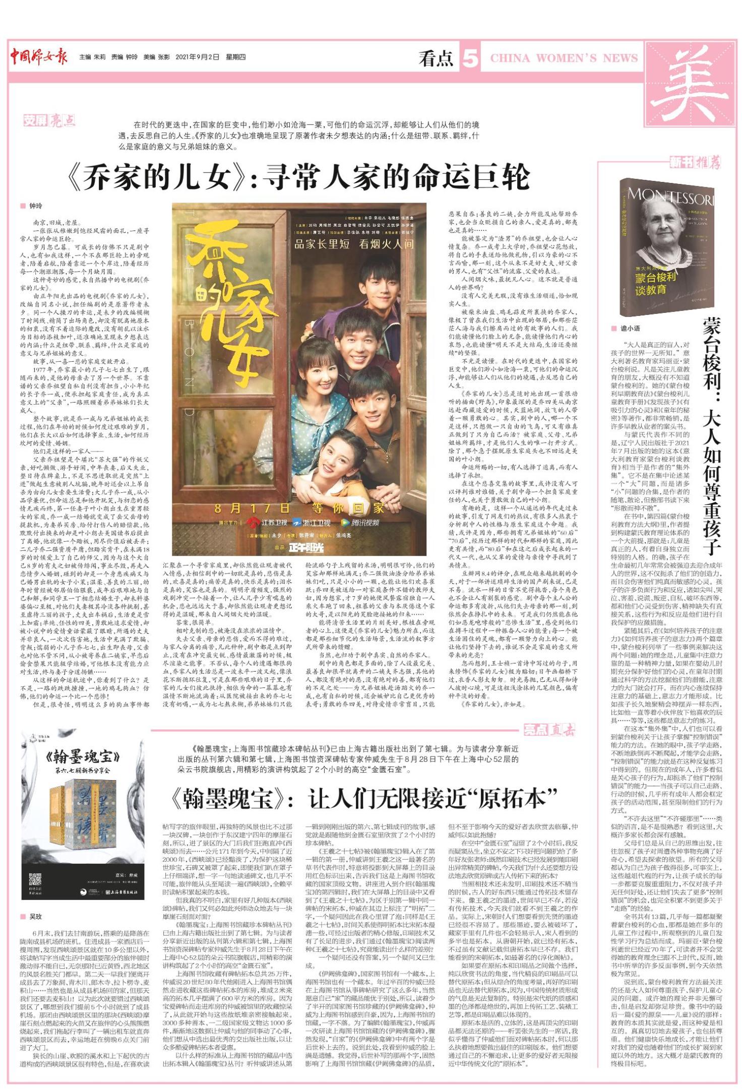 《中国妇女报》(电子版)的一切内容(包括但不限于文字、图片、PDF、图表、标志、标识、商标、版面设计、专栏目录与名称、内容分类标准以及为读者提供的任何信息)仅供中国妇女报读者阅读、学习研究使用,未经中国妇女报及/或相关权利人书面授权,任何单位及个人不得将《中国妇女报》(电子版)所登载、发布的内容用于商业性目的,包括但不限于转载、复制、发行、制作光盘、数据库、触摸展示等行为方式,或将之在非本站所属的服务器上作镜像。否则,中国妇女报将采取包括但不限于网上公示、向有关部门举报、诉讼等一切合法手段,追究侵权者的法律责任。