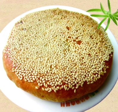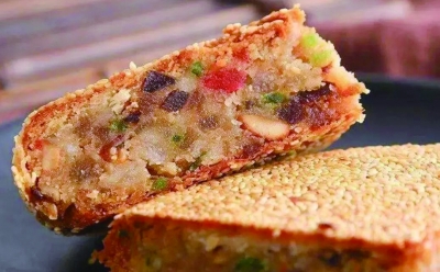 陕北手工月饼。许多土月饼都离不开一个大字,直径20厘米、重量3斤左右的陕北手工月饼也逃不出这个大字,它就是陕西月饼的白月光。每年中秋,纯手工制作的陕北月饼在西安很吃香,其常用馅料有五仁和枣泥豆沙。五仁馅料是将核桃、芝麻、瓜子、花生先炒熟,再加上葡萄、红糖、白糖等,吃起来非常香。这种手工月饼,看着很土,但吃起来酥香可口,不是很甜也不油腻。