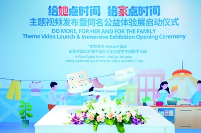 中国妇女报全媒体记者李雪婷发自北京 9月15日, 联合国妇女署中国办公室与宜家中国携手在京发布《给她点时间,给家点时间》主题公益视频并揭幕同名主题公益体验展,呼吁家庭成员共同承担无偿照料,推动家庭中的性别平等。