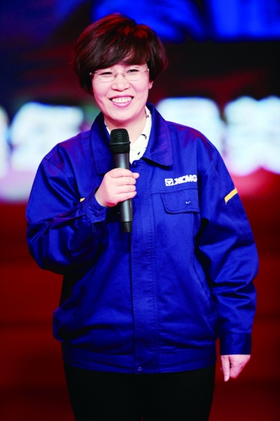徐工集团高级工程师孙丽在“最美职工”发布仪式上(2018年4月25日摄)。新华社记者 才扬/摄