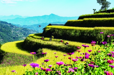 9月22日,秭归县沙镇溪镇长春村村民在田间收获高山冷水稻。 时下,湖北省宜昌市秭归县高山冷水稻进入收获季。当地农民抢抓农时进行收割、搬运、贮藏,确保秋粮颗粒归仓,田间地头一派忙碌景象。层层叠叠的梯田、劳作的农民与传统民居构成了一幅美丽的农耕画卷。 新华社发(郑家裕/摄)