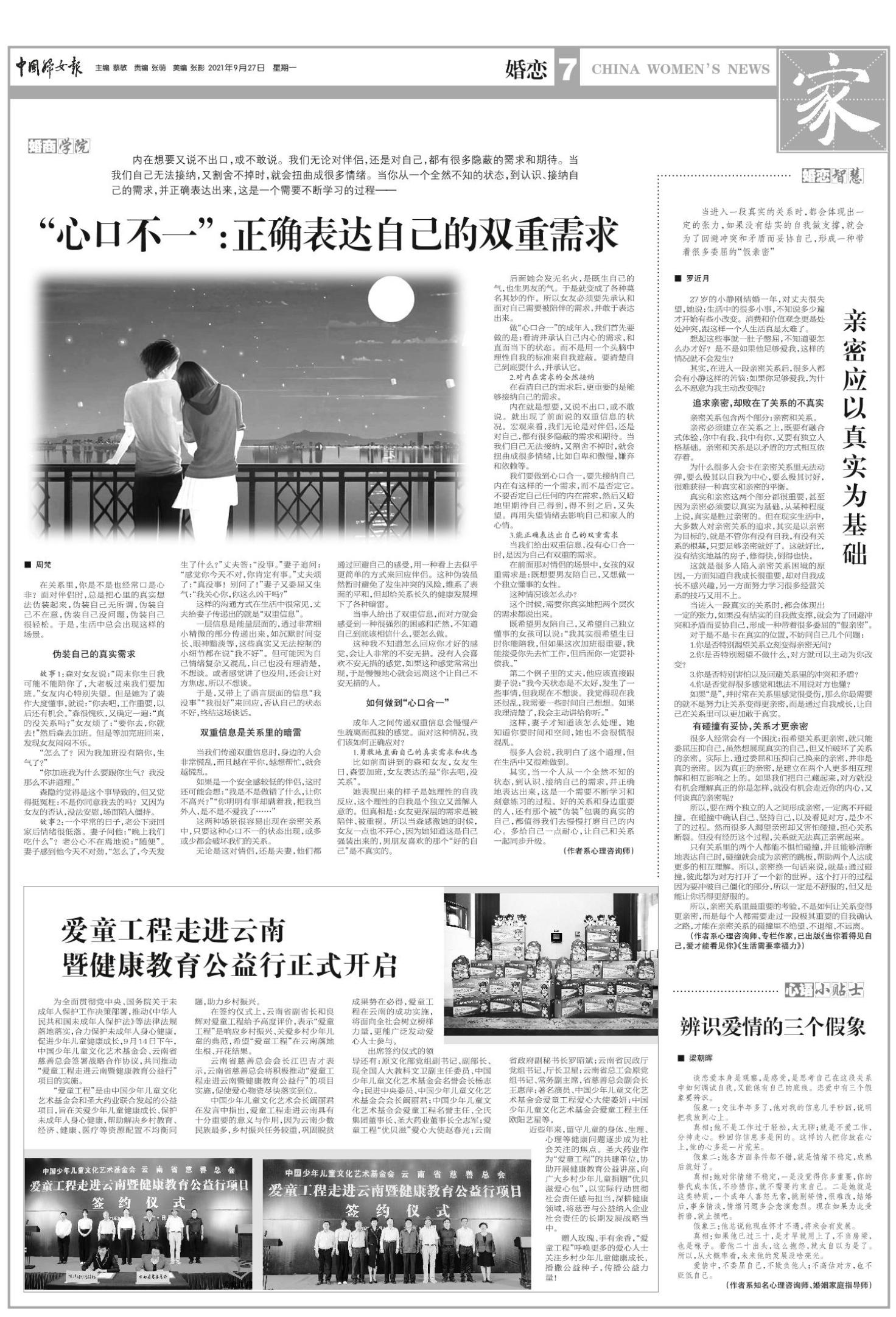 《中国妇女报》(电子版)的一切内容(包括但不限于文字、图片、PDF、图表、标志、标识、商标、版面设计、专栏目录与名称、内容分类标准以及为读者提供的任何信息)仅供中国妇女报读者阅读、学习研究使用,未经中国妇女报及/或相关权利人书面授权,任何单位及个人不得将《中国妇女报》(电子版)所登载、发布的内容用于商业性目的,包括但不限于转载、复制、发行、制作光盘、数据库、触摸展示等行为方式,或将之在非本站所属的服务器上作镜像。否则,中国妇女报将采取包括但不限于网上公示、向有关部门举报、诉讼等一切合法手段,追究侵权者的法律责任。