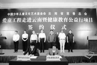 为全面贯彻党中央、国务院关于未成年人保护工作决策部署,推动《中华人民共和国未成年人保护法》等法律法规落地落实,合力保护未成年人身心健康,促进少年儿童健康成长,9月14日下午,中国少年儿童文化艺术基金会、云南省慈善总会签署战略合作协议,共同推动“爱童工程走进云南暨健康教育公益行”项目的实施。