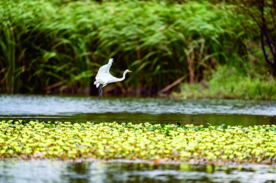 水鸟在昆明宝丰半岛湿地嬉戏(9月25日摄)。《生物多样性公约》缔约方大会第十五次会议(COP15)第一阶段会议将于10月11日在昆明召开,作为本次大会室外展览展示项目之一的昆明宝丰半岛湿地建设目前已进入收尾阶段。 新华社记者 江文耀/摄