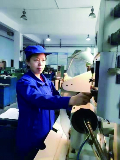 ▲河南三门峡中原量仪公司的首席员工、高级磨工李淑团正在车间工作。苏建军/摄