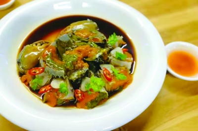平心而论,郑师傅的菜是有点手艺和想法的。墨鱼夹一面芝麻、一面紫菜,煎得喷香,阿姨说“要趁热吃”。豆酱迪仔鱼(俗称的剥皮鱼),亮点在于滑嫩无比的鱼肝,但剥皮鱼肉偏紧实,豆酱汁量少也不够入味,越吃越淡,到最后有些寡而无味。