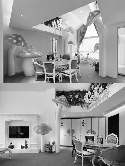不知道修改了多少稿,以亲子民宿为主题的“童话城堡”设计图,终于俘获了邱明明的心。2018年,“秋田布谷”正式对外营业,“霍比特人”小屋、“爱丽丝梦游仙境”小屋、“风之谷”……一期15个亲子主题房间一经推出,便以耳目一新的环境和服务收获了一众“死忠粉”。