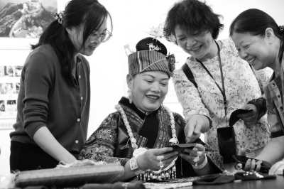 2021年10月12日,在浙江省湖州市德清县莫干山镇“一针一线”中西艺术工坊,苗绣非遗传承人为当地农村妇女现场传授刺绣技艺。当日,中国妇女发展基金会在莫干山镇开展“一针一线”女性发展项目,通过女性手艺传承人赋能培训、手工艺交流和产品展示等,传承手工刺绣技艺的同时,带动农村妇女增收致富,助力乡村振兴和共同富裕。中国妇女报全媒体记者 姚改改/谢尚国 文/摄