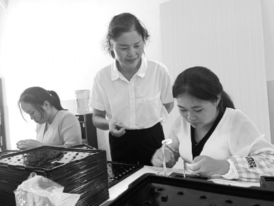 这个车间是贵州欧姆电子有限公司在去年2月开设的,已吸纳80余名当地妇女就业。“在这里上班,都是手上活儿,每天有100多块钱的收入,还能照顾老人和小孩。”正在车间务工的代小园说。