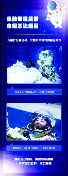 出舱活动水下训练中,她在10米深的水下,克服水的阻力和服装40千帕的压力,不断调整身体姿态,完成攀爬、操作等各种动作,一练就是五六个小时。男航天员在水下坚持多久,王亚平同样在水下坚持多久。