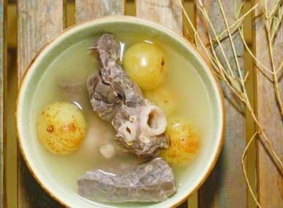 油柑药用价值也不小。在中国古代文献中,油柑有益寿、解毒的功能。油柑炖猪肺,汤清味鲜,润肺补益,猪肺的腥被油柑去掉了,油柑的酸甜又复给汤加了天然调味。咽喉不适时来一盅油柑猪肺汤,时间长河里跃动着食疗的智慧,金灿灿宛若一枚枚可爱的油柑,自命不凡又活泼趣味。