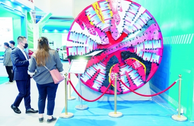下图:10月21日,在北京展览馆举行的国家“十三五”科技创新成就展上,观众参观国产盾构机“京华号”模型。