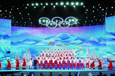 运动员、志愿者和社会各界代表欢聚一堂,洋溢着一派欢乐喜庆氛围。活动现场,北京冬奥会奖牌“同心”精彩亮相。