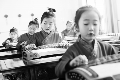 11月15日,淮北市第三实验小学的学生学习古筝。 秋季开学以来,安徽省淮北市的中小学校利用大课间和课后服务等课外时间,开展形式多样的特色文体社团活动,丰富校园生活,促进学生全面发展和健康成长。新华社发(万善朝/摄)