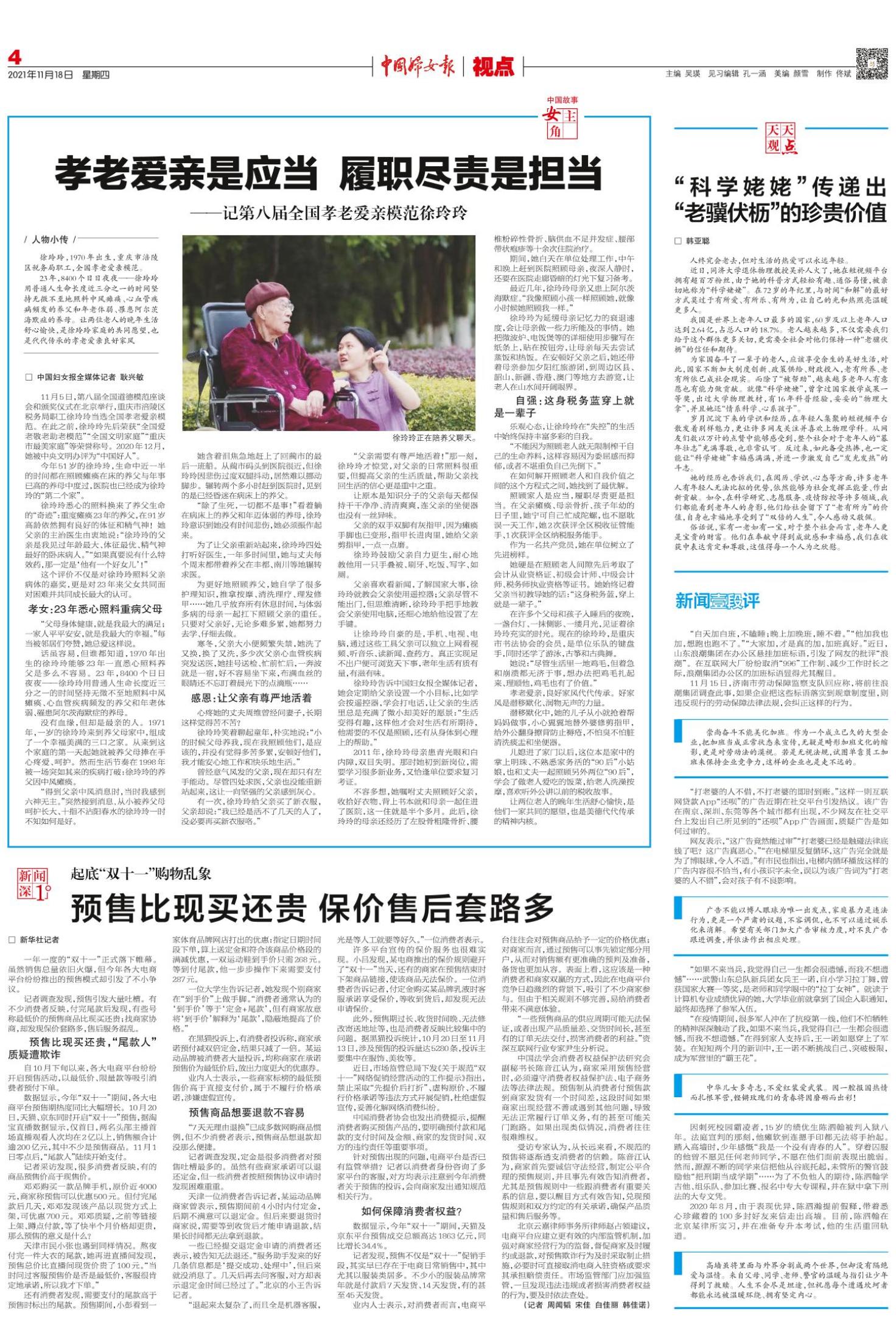 《中国妇女报》(电子版)的一切内容(包括但不限于文字、图片、PDF、图表、标志、标识、商标、版面设计、专栏目录与名称、内容分类标准以及为读者提供的任何信息)仅供中国妇女报读者阅读、学习研究使用,未经中国妇女报及/或相关权利人书面授权,任何单位及个人不得将《中国妇女报》(电子版)所登载、发布的内容用于商业性目的,包括但不限于转载、复制、发行、制作光盘、数据库、触摸展示等行为方式,或将之在非本站所属的服务器上作镜像。否则,中国妇女报将采取包括但不限于网上公示、向有关部门举报、诉讼等一切合法手段,追究侵权者的法律责任。