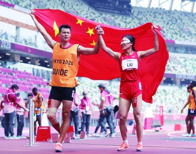 在东京残奥会上,刘翠青和徐冬林共夺得了女子T11级别200米和400米2枚金牌,创造了一项新的残奥会纪录。刘翠青说:“为了国歌奏响的那一刻,一切的辛苦都值得!”