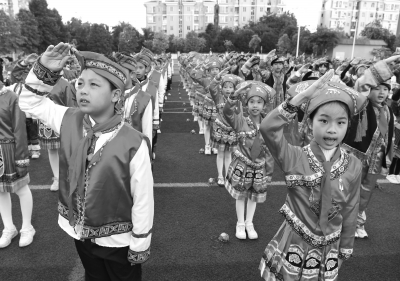 12月2日,孩子们在南宁市玉兰路小学建校五周年活动上。 当日,广西南宁市玉兰路小学举行庆祝建校五周年活动。孩子们敲响铜鼓,唱歌跳舞,以充满青春气息的方式,表达与学校共同成长的快乐。 新华社记者 周华/摄