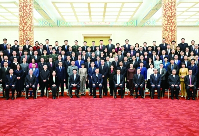 下午3时10分,习近平等来到人民大会堂金色大厅,全场响起热烈掌声。习近平等走到代表们中间,同大家亲切交流并合影留念。