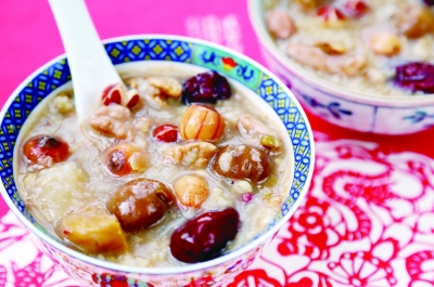 其实,腊八粥食材并非越杂越好,要看食材质量而不能单看数量。如果食材中有比较多的粗粮和杂粮,比如黑米、高粱米、红小豆、薏仁米,其维生素和矿物质含量比精白米高出几倍到十几倍,而且富含多种膳食纤维和抗氧化成分,确实会提升腊八粥的营养价值;如果往粥里加入各种水果干、糖果等,则会使粥变得很甜,反而对健康不利。