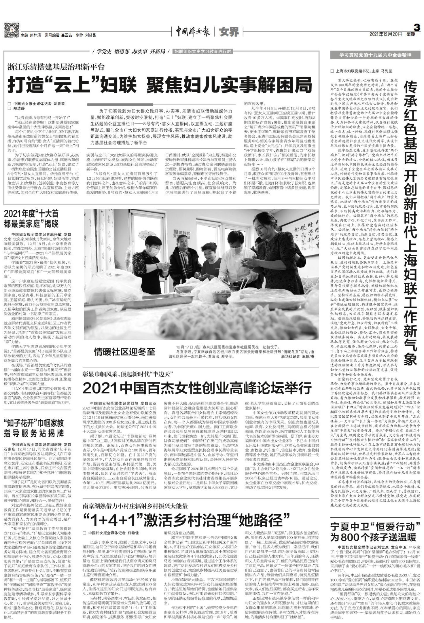 中国妇女报全媒体记者耿兴敏 发自北京 优良家风铸就时代新风,京华大地唱响最美赞歌。12月18日,由北京市委宣传部、首都文明办、北京市妇联共同主办的“与幸福同行”——2021年“首都最美家庭”揭晓线上直播活动举办。