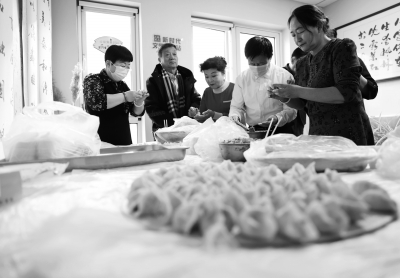 12月17日,银川市兴庆区丽景街道泰和社区居民在一起包饺子。 冬至临近,宁夏回族自治区银川市兴庆区丽景街道泰和社区开展“情暖冬至”活动,邀请社区居民一起包饺子,看演出,迎冬至。新华社记者 王鹏/摄