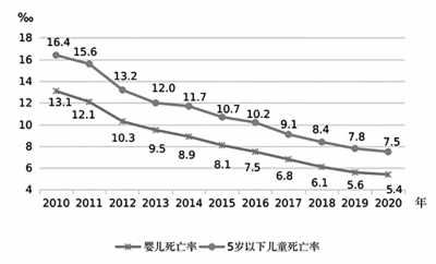 2010—2020年全国婴儿死亡率和5岁以下儿童死亡率