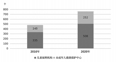 1.儿童福利和救助保护机构建设稳步推进。《纲要》实施以来,儿童福利机构和未成年人救助保护机构建设不断加强,机构数量稳中有升,为开展儿童福利保护服务提供了有力保障。截至2020年底,全国共有儿童福利和救助保护机构760个,比2010年底增加280个;机构共有床位10.1万张,比2010年底增加4.5万张。其中,儿童福利机构508个,床位9.1万张;未成年人救助保护中心252个,床位1.0万张。2020年,全年共救助流浪未成年人3.1万人次。
