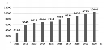 3.儿童文化产品供给日益丰富。《纲要》实施以来,面向青少年儿童的优质文化产品不断增加,青少年儿童日益增长的文化需求逐步得到满足。2020年,全国出版初中及以下少年儿童图书4.3万种9.0亿册(张),出版初中及以下少年儿童期刊209种3.3亿册。全国3212个公共图书馆共有少儿文献1.5亿册,是2011年的4.9倍。全国少儿广播节目、少儿电视节目、电视动画节目播出时间分别为28.8万小时、63.1万小时和44.6万小时,分别是2011年的2.1倍、1.7倍和1.6倍。全国未成年人参观博物馆1.2亿人次。