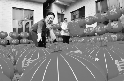 12月22日,邢台市南和区东三召乡一家灯笼作坊工人在整理晾晒的灯笼。 新年临近,河北省邢台市南和区东三召乡的灯笼作坊赶制各式灯笼,供应市场。近年来,东三召乡依托当地传统灯笼制作技艺,结合市场需求,生产植绒灯笼、拉丝灯笼、传统宫灯等灯笼产品,吸纳村民在家门口就业增收。 新华社记者 朱旭东/摄