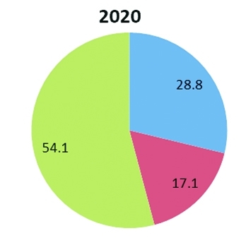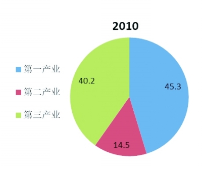 女性在第一、二、三产业就业的比例分别为28.8%、17.1%和54.1%,其中在第一产业就业的比例比2010年降低16.5个百分点,在第二、三产业就业的比例分别比2010年提高2.6和13.9个百分点(见图1)。