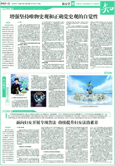 11月,党的十九届六中全会在京胜利召开。全会审议通过了《中共中央关于党的百年奋斗重大成就和历史经验的决议》这一马克思主义的纲领性文献。《新女学》邀请专家阐释党的十九届六中全会精神及全会《决议》的丰富内涵与核心要义,推出《从三大“历史决议”看党的百年奋斗历程》《中国共产党百年奋斗的历史意义》《坚持和走好中国特色社会主义妇女发展道路》《牢记一个根本问题 续写新的伟大胜利》《增强坚持唯物史观和正确党史观的自觉性》《精准把握“两个确立”的生成逻辑》等专题文章,引领广大妇女和家庭掀起学习贯彻十九届六中全会精神的热潮,在新时代新征程上为赢得更加伟大的胜利发挥半边天作用。