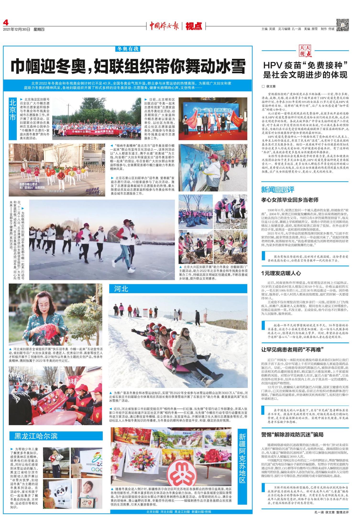 《中国妇女报》(电子版)的一切内容(包括但不限于文字、图片、PDF、图表、标志、标识、商标、版面设计、专栏目录与名称、内容分类标准以及为读者提供的任何信息)仅供中国妇女报读者阅读、学习研究使用,未经中国妇女报及/或相关权利人书面授权,任何单位及个人不得将《中国妇女报》(电子版)所登载、发布的内容用于商业性目的,包括但不限于转载、复制、发行、制作光盘、数据库、触摸展示等行为方式,或将之在非本站所属的服务器上作镜像。否则,中国妇女报将采取包括但不限于网上公示、向有关部门举报、诉讼等一切合法手段,追究侵权者的法律责任。