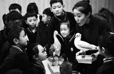 十二月二十九日,沧州渤海新区第三小学的学生在观察候鸟标本。河北省沧州市的沿海地区是东北亚候鸟迁徙通道上的重要驿站。当日,沧州渤海新区第三小学与沧州市野生动物救护中心共同举办以“当好候鸟驿站的守护者”为主题的生态公益课,向学生们宣传爱鸟护鸟知识。新华社记者 王民/摄