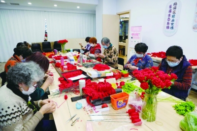 一针一线的钩织,一片一片的组装,2400朵手工玫瑰在杨浦区妇女儿童活动中心绽放。“一想到我们亲手钩织的花能‘飞’到世界各地去,被外国友人看到这门中国手艺、民间瑰宝,我就觉得自己为艺术的传播、为北京冬奥会做了贡献,感到非常荣幸。”80岁的巧手妈妈牟国英说。