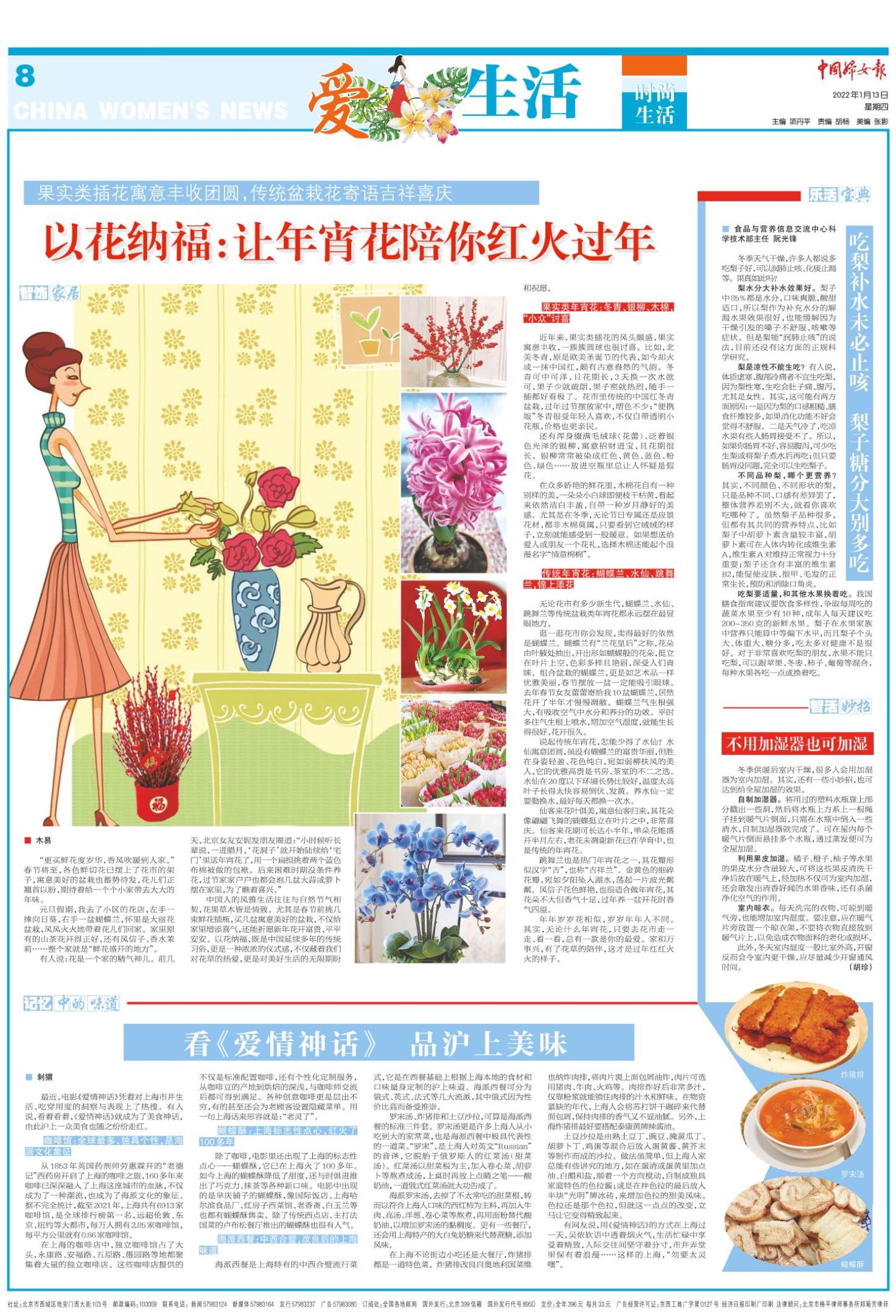 有人说:花是一个家的精气神儿。前几天,北京女友安妮发朋友圈道:“小时候听长辈说,一进腊月,‘花洞子’就开始陆续给‘宅门’里送年宵花了,用一个扁担挑着两个蓝色布棉被做的包袱。后来困难时期没条件养花,过节家家户户也都会泡几盆大蒜或萝卜摆在家里,为了瞧着喜兴。”