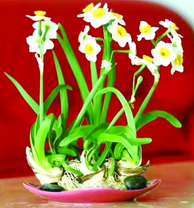 说起传统年宵花,怎能少得了水仙?水仙寓意团圆,虽没有蝴蝶兰的富贵华丽,但胜在身姿轻盈、花色纯白,宛如弱柳扶风的美人,它的优雅高贵是书房、茶室的不二之选。水仙在20度以下环境长势比较好,温度太高叶子长得太快容易倒伏、发黄。养水仙一定要勤换水,最好每天都换一次水。