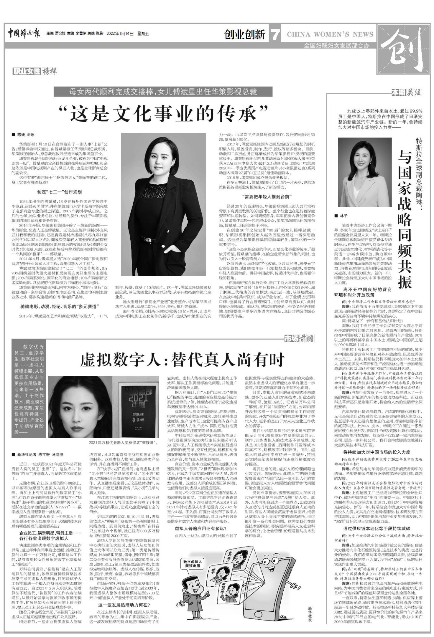 《中国妇女报》(电子版)的一切内容(包括但不限于文字、图片、PDF、图表、标志、标识、商标、版面设计、专栏目录与名称、内容分类标准以及为读者提供的任何信息)仅供中国妇女报读者阅读、学习研究使用,未经中国妇女报及/或相关权利人书面授权,任何单位及个人不得将《中国妇女报》(电子版)所登载、发布的内容用于商业性目的,包括但不限于转载、复制、发行、制作光盘、数据库、触摸展示等行为方式,或将之在非本站所属的服务器上作镜像。否则,中国妇女报将采取包括但不限于网上公示、向有关部门举报、诉讼等一切合法手段,追究侵权者的法律责任。