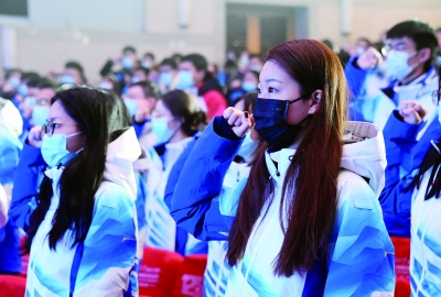 在出征仪式上,中华女子学院全体冬奥志愿者进行了庄严宣誓。“要弘扬奥林匹克精神,践行‘奉献、友爱、互助、进步’志愿服务理念,团结协作,热情服务,不怕困难,奋勇争先,立足新时代,展现新作为,为祖国争光,为冬奥添彩!”铿锵有力的誓言,展现了他们为2022北京冬奥会贡献力量的坚定决心。