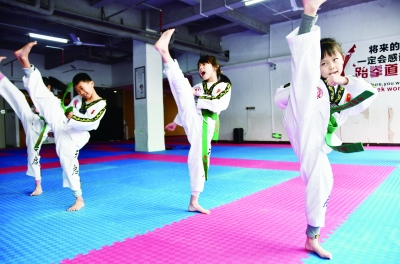 1月18日,孩子们在湖南省永州市江永县一家跆拳道馆学习跆拳道。 寒假期间,各地学生参加多彩文体活动,增长知识、强健体魄,乐享假期生活。 新华社发(田如瑞/摄)