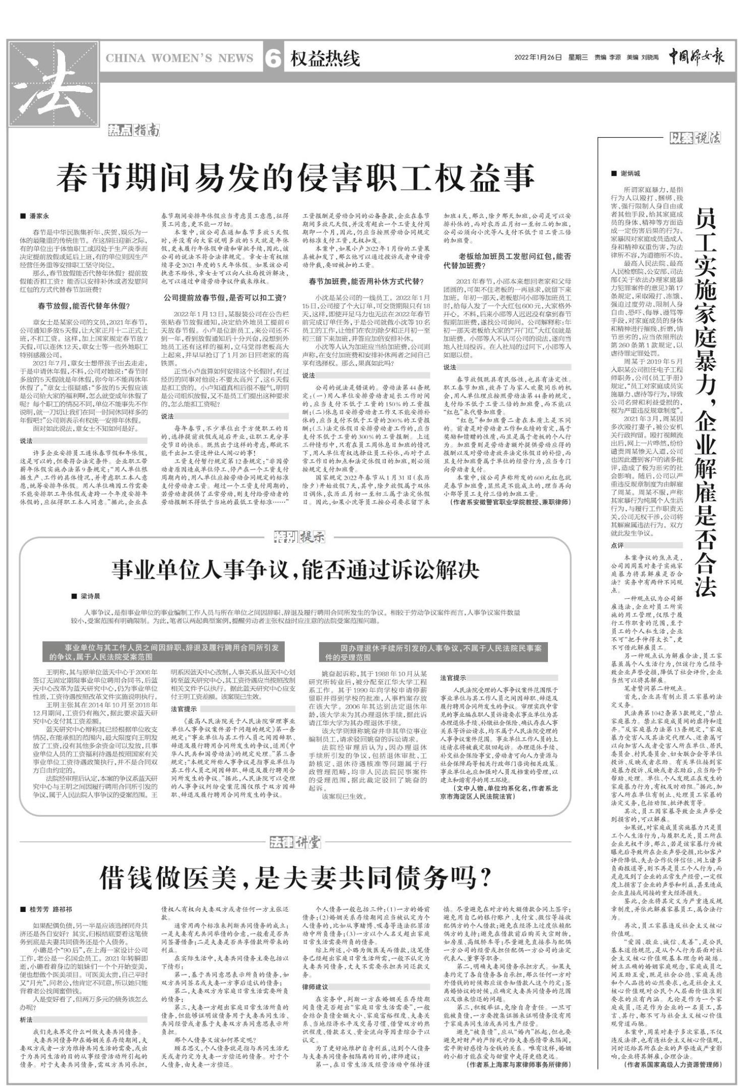 《中国妇女报》(电子版)的一切内容(包括但不限于文字、图片、PDF、图表、标志、标识、商标、版面设计、专栏目录与名称、内容分类标准以及为读者提供的任何信息)仅供中国妇女报读者阅读、学习研究使用,未经中国妇女报及/或相关权利人书面授权,任何单位及个人不得将《中国妇女报》(电子版)所登载、发布的内容用于商业性目的,包括但不限于转载、复制、发行、制作光盘、数据库、触摸展示等行为方式,或将之在非本站所属的服务器上作镜像。否则,中国妇女报将采取包括但不限于网上公示、向有关部门举报、诉讼等一切合法手段,追究侵权者的法律责任。