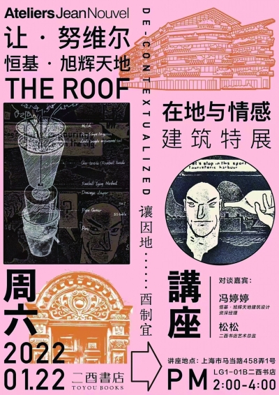 2022年1月22日,位于恒基·旭辉天地地下一层的二酉书店举办的一场主题为“在地与情感”的讲座,由建筑设计师冯婷婷与多家咖啡馆和书店的艺术总监松松与大家分享让·努维尔的建筑风格。