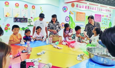 走进托管班,占地100多平方米的教室格外明亮,室内饮水机、玩具柜、幼儿图书、小餐桌、写字白板等一应俱全。托管班主要为职工(外出务工人员)子女提供课余、周末、假期作业辅导,开设绘画、剪纸、民族舞蹈、音乐、英语课堂、文明礼仪等课程,让孩子们在提高生活自理能力的同时增强集体协作互助能力。