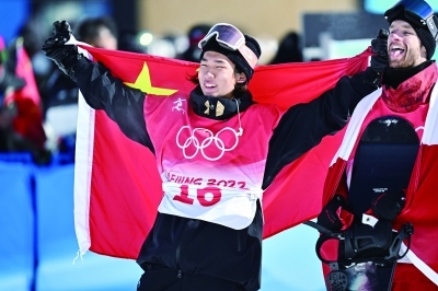 “在比赛没结束那一刻,你永远不知道什么会发生,所以在那个时候我要做自己最好的一面,把自己最好的一套动作完成出来,这个是我今天最大的目标,不管是在第几趟。”身披国旗,手握特别版的“冰墩墩”,苏翊鸣的脸上写满幸福:“首先我要特别感谢我的祖国一直在背后支持着我,如果没有我的祖国,我拿不了今天的成绩。其次就是我的家人,我的每个朋友对我的支持,如果没有我的父母第一次带我尝试滑雪,可能今天我不会站在冬奥会的舞台上,站在领奖台上。我特别要感谢所有支持我关心我为我加油的人,这个成绩是我们大家一起完成的!”