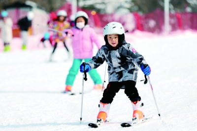 2月9日,陕西西安翠华山滑雪场吸引游客前来享受冰雪运动的快乐。图为小朋友们在滑雪场内滑雪。中新社记者 张远/摄