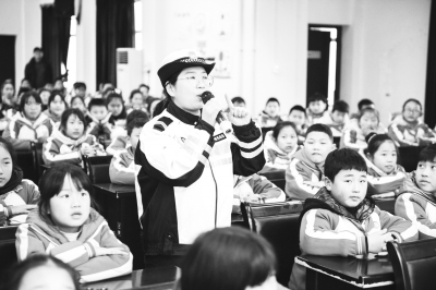 2月17日,在桃源县实验学校,桃源县公安局交警大队交警在给学生们上开学第一课。 当日,湖南省常德市交管部门组织民警走进桃源县实验学校,带来主题为“交通安全进学校”的开学第一课,通过交通安全知识讲座、发放交通安全宣传资料和赠送安全头盔,让学生们了解交通安全知识,树立交通安全意识。 新华社记者 陈思汗/摄