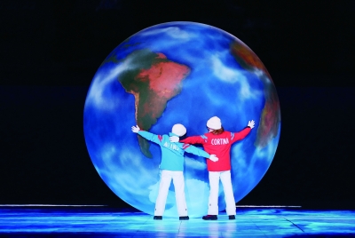 在奥运五环旗交接仪式上,北京市市长陈吉宁将旗帜交给国际奥委会主席巴赫,巴赫又将旗帜交给下届冬奥会主办城市意大利米兰市市长萨拉和科尔蒂纳丹佩佐市市长盖迪纳。随着宣传片镜头定格在由飞机彩色烟带组成的意大利国旗时,冬奥会正式进入米兰—科尔蒂纳丹佩佐时间。